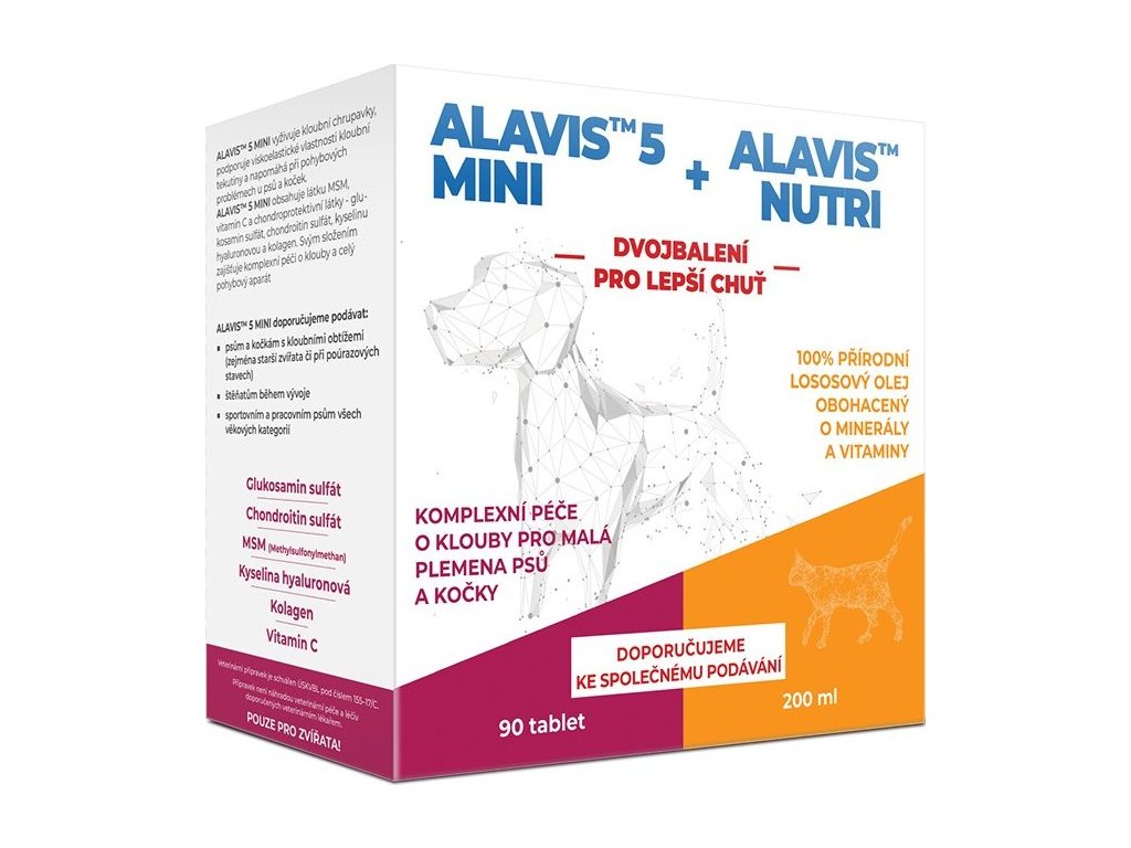 ALAVIS™ 5 MINI vyživuje kloubní chrupavky, podporuje promazávací vlastnosti kloubní tekutiny, napomáhá při pohybových problémech u psů a koček.
