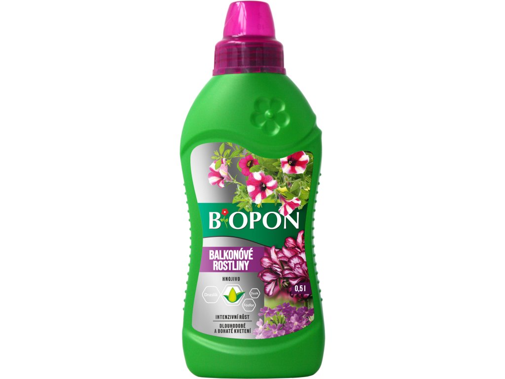 Biopon pro balkónové rostliny je vícesložkové minerální hnojivo určené pro balkónové a terasové rostliny. Obsah dusíku v amidové formě prodlužuje účinnou dobu. Je dostačující rostliny hnojit každých 10 dní. Optimálně vybírané množství draslíku rostliny povzbuzuje k bohatému květu.