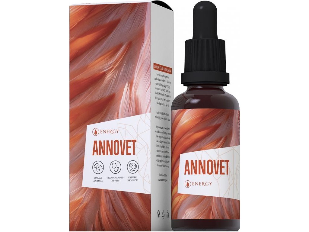 EnergyVet AnnoVet je koncentrát z extraktu listů jihoamerického stromu annona ostnitá obsahující acetogeniny. U starších zvířat se projevuje vitalizačními účinky.