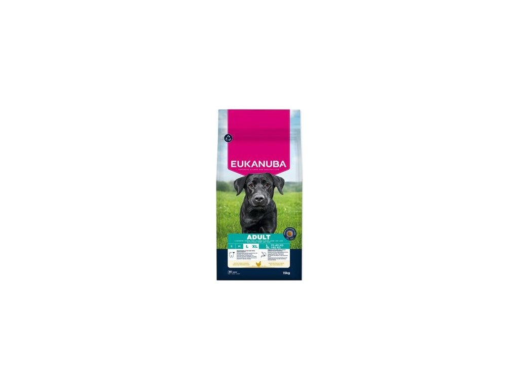 Kompletní krmivo pro psy velkých a obřích plemen Vhodné pro psy velkých a obřích plemen od 1 do 6 let s hmotností od 25 do 40 kg a od 2 do 6 let pro psy s hmotností nad 40 kg. Nová EUKANUBA vylepšená receptura se zaměřením na konkrétní fázi života - pro velké aktivní dospělé psy od 18 měsíců do 6 let – poskytuje na míru upravenou výživu pro podporu štíhlých svalů a vyvážený příjem energie, které zajistí optimální tělesný stav vašeho dospělého psa.