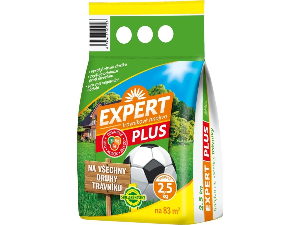 Hnojivo EXPERT PLUS je granulované hnojivo na trávníky, obsahující základní živiny - dusík, fosfor, draslík - ve vyváženém poměru. Současně obsahuje hořčík v síranové formě. Toto hnojivo je vhodné ke hnojení všech typů trávníků, sportovních i okrasných.