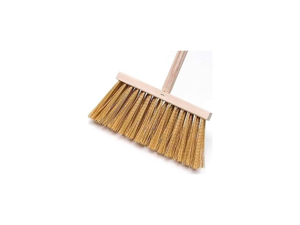 kartáč koštěte je vyroben ze syntetického vlákna, s dřevěnou násadou.