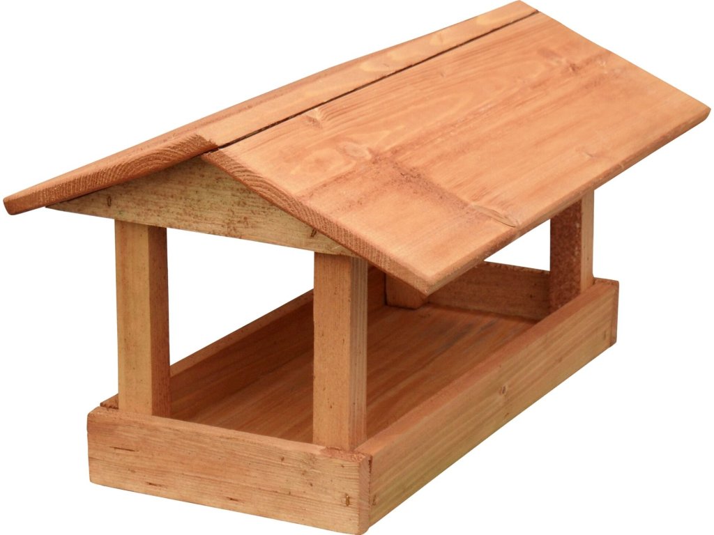 Dřevěné krmítko určené pro přikrmování venkovního ptactva převážně v zimních měsících.