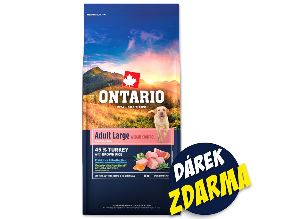 Krmivo Ontario Large Weight Control Turkey 12kg + 2 konzervy 400g ZDARMA