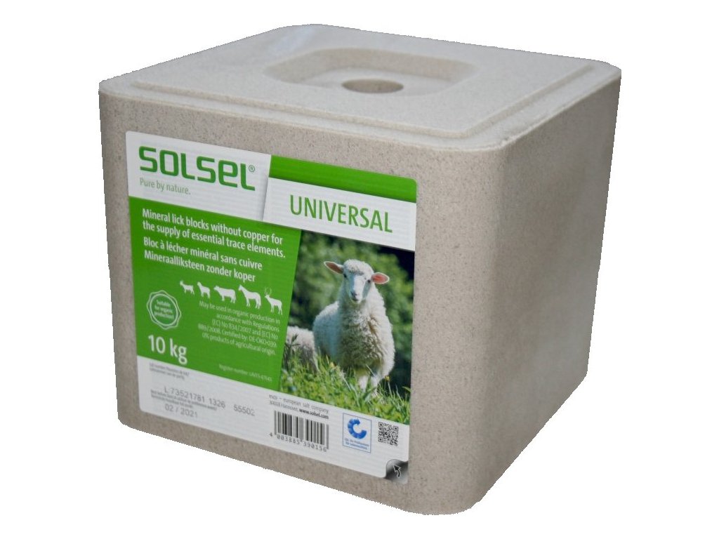 Solný minerální liz SOLSEL bez mědi byl vyvinut speciálně pro ovce, aby se předešlo nesnášenlivosti typické pro tento druh zvířat. Může být bezpečně užíván i při výkrmu skotu, koní, koz, prasat nebo divoké zvěře.
