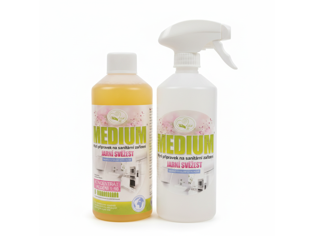 MEDIUM - KONCENTROVANÝ PŘÍPRAVEK NA SANITÁRNÍ ZAŘÍZENÍ + ROZPRAŠOVAČ V SETU.