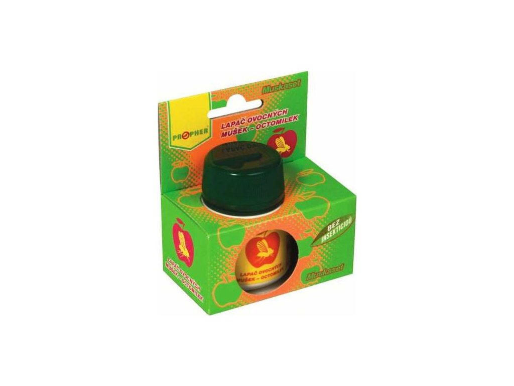 Plastový lapač k odchytu octomilek - ovocných mušek s potravinovým atraktantem.