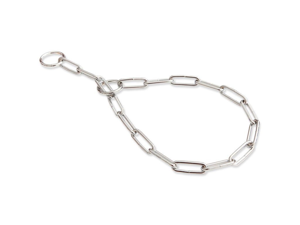 Řetízkový stahovací obojek s velkými oválnými oky je vyroben z pevného materiálu.