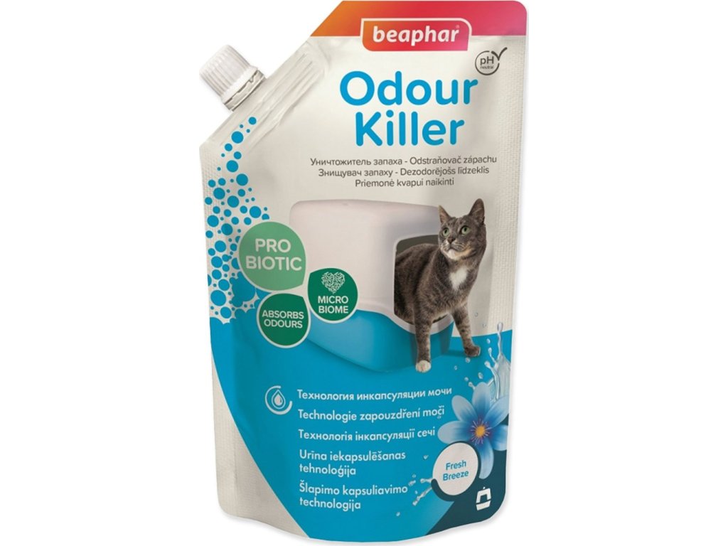Odstraňovač zápachu Odour Killer je unikátní produkt, který obsahuje inovativní směs k odstranění pachu kočičí moči: příjemný deodorant, blokátor enzymů (ureázy) a prospěšné mikroby. Přípravek má neutrální pH a je naprosto bezpečný.