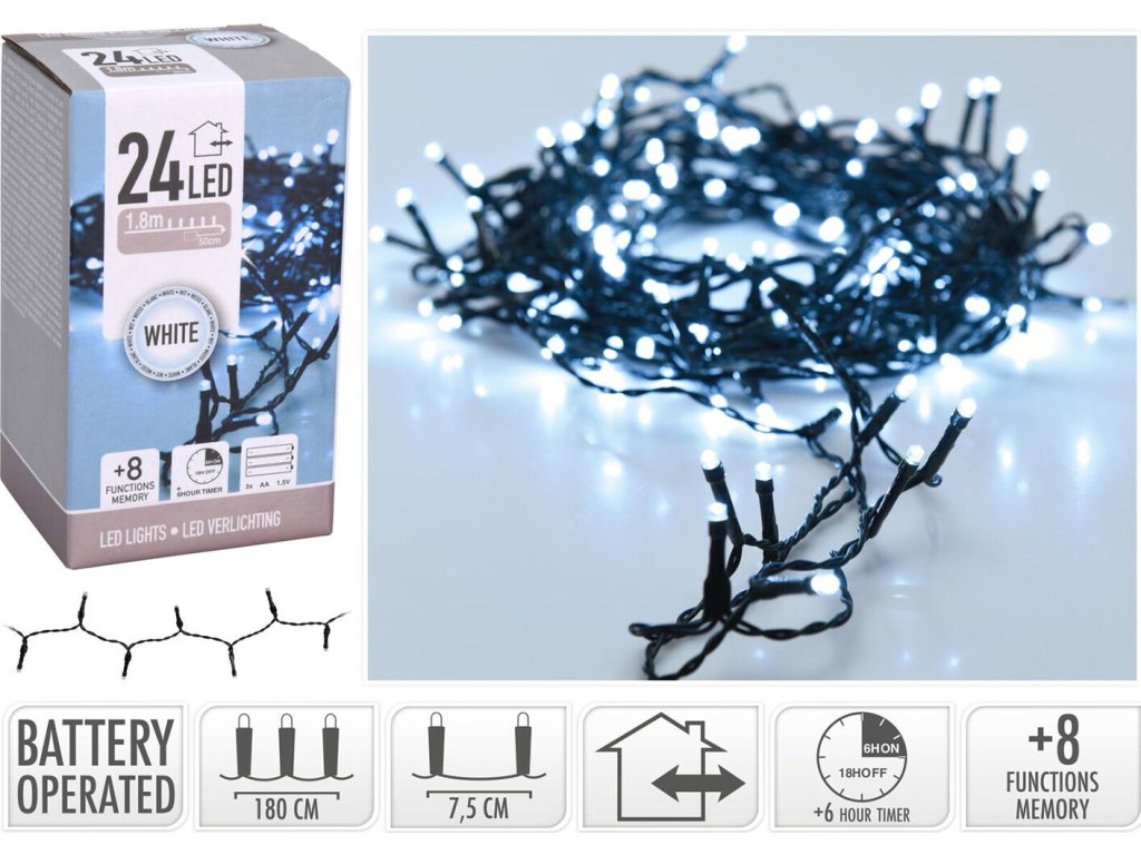Osvětlení vánoční 1,8 m, 24LED, studená BÍ, 8 funkcí, s časovačem.