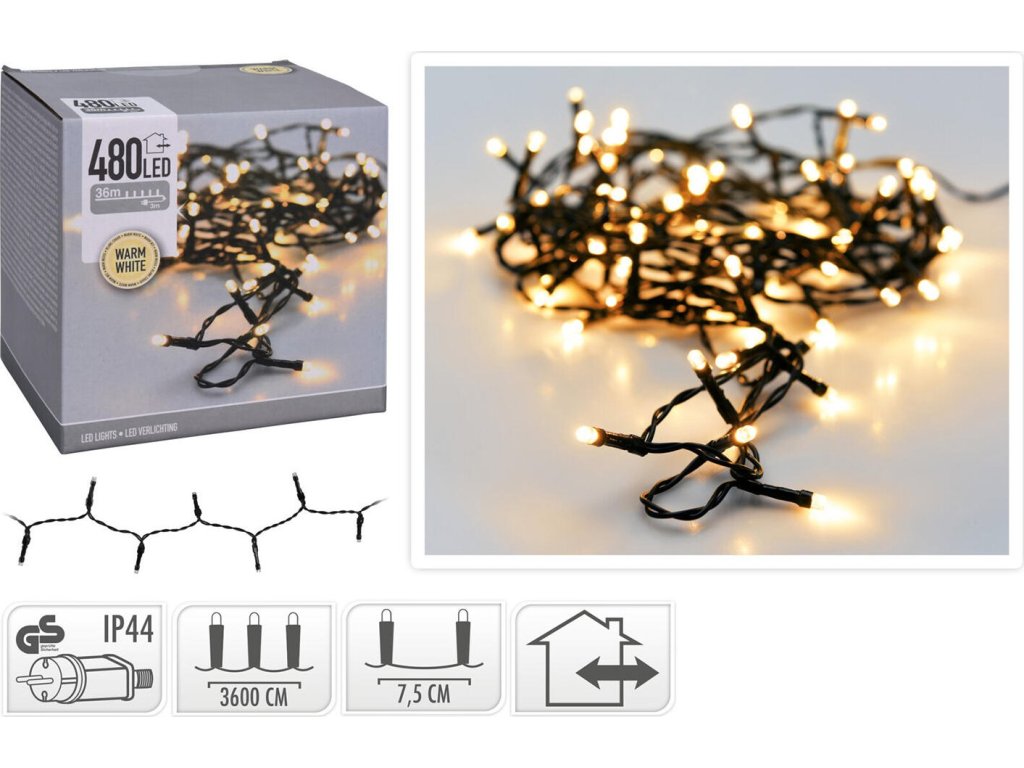 Osvětlení vánoční 36 m, 480LED, teplá BÍ, ZE drát.