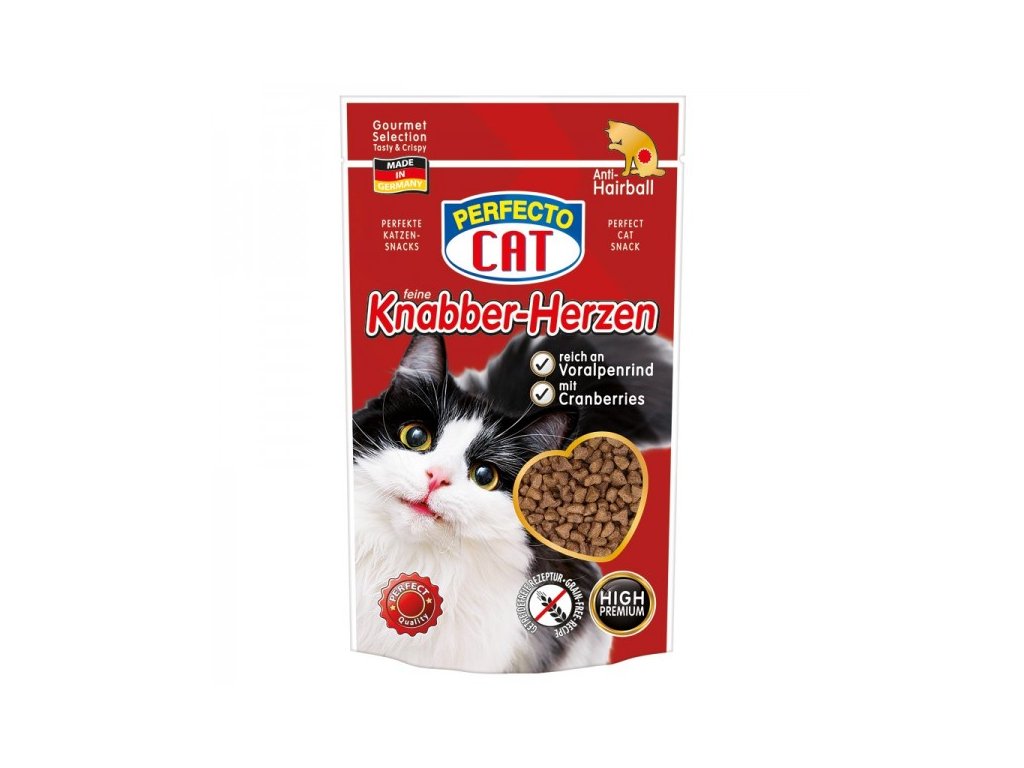 Perfecto Cat Feine Knabber-Snack s Alpským šťavnatým Hovězím Anti-Hairball 50g