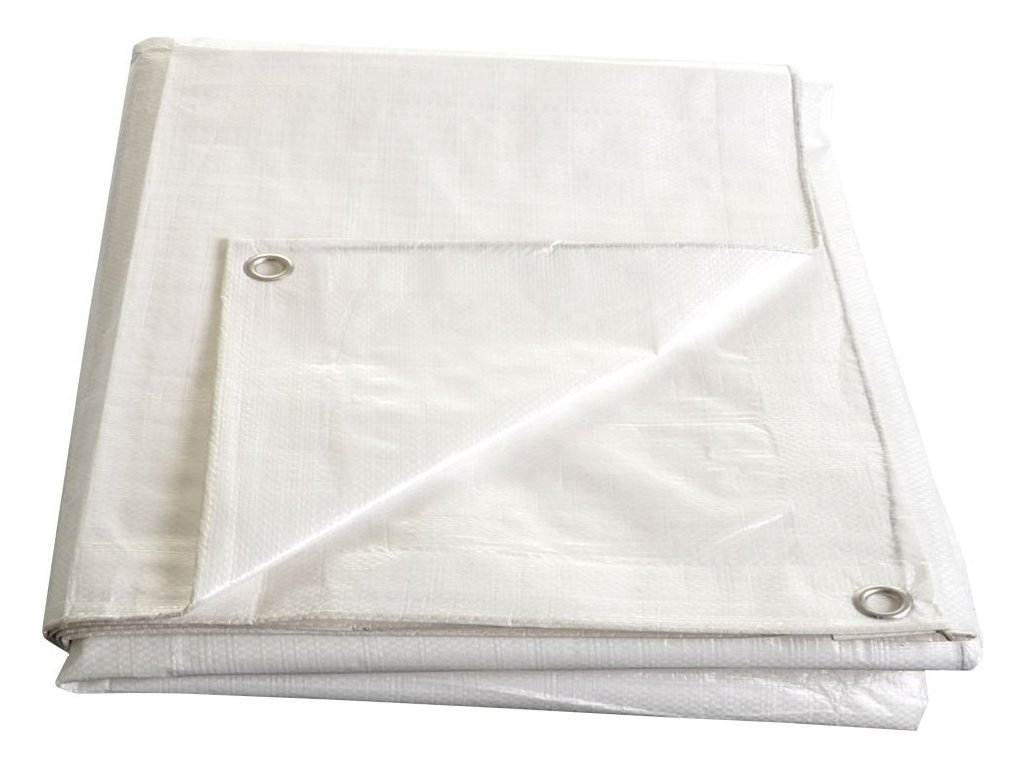 Bílá plachta, je vhodná například na zakrytí stavebních materiálů jako je písek či na dřevo.