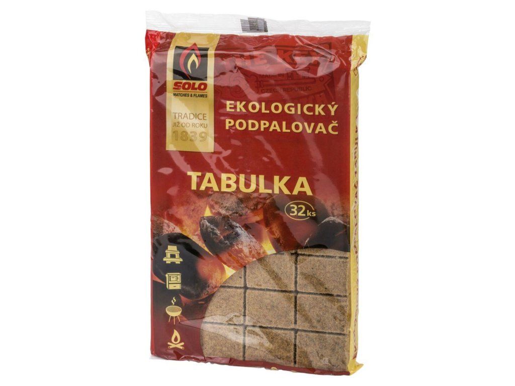 Podpalovač ekologický SOLO: Doba hoření 6 - 8 minut, vyrobeno z přírodních materiálů, 32 podpalů, bez nepříjemného chemického zápachu, slouží k podpalování krbů, kamen, grilů, ohnišť.