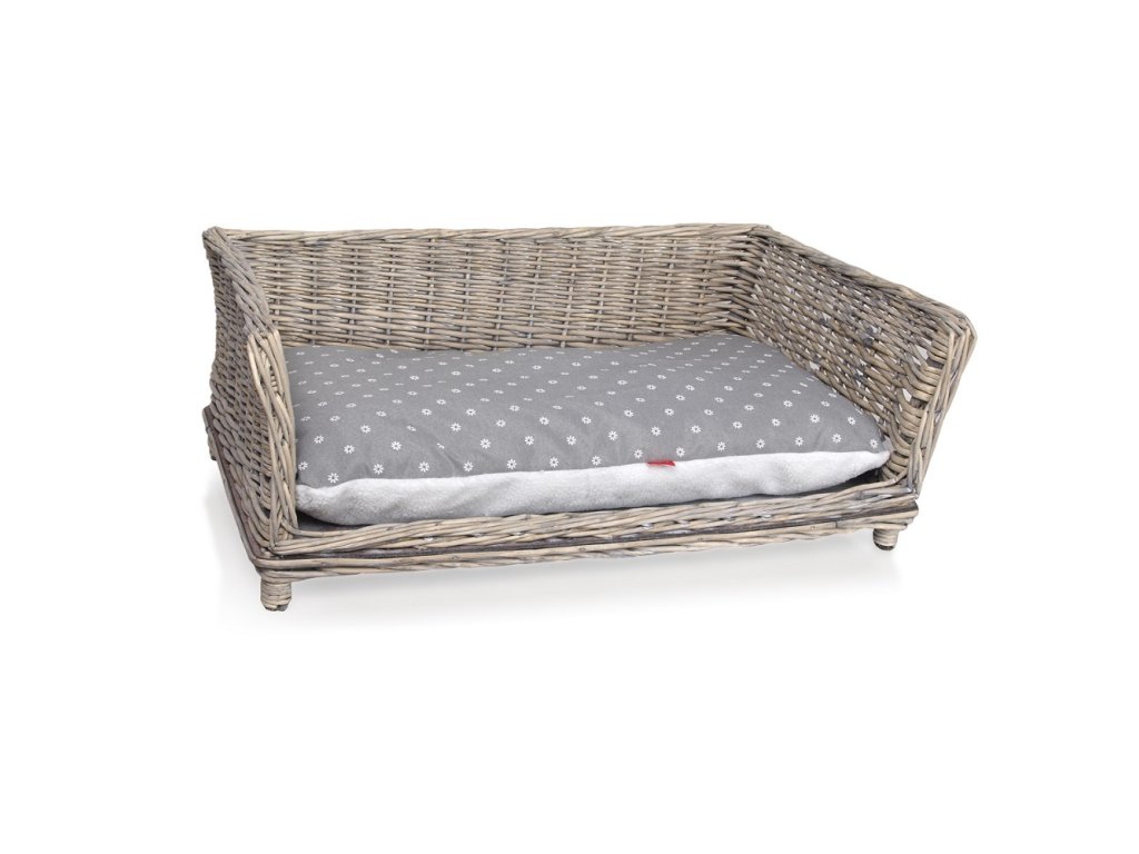 Proutěné kanape pro psy s povrchovou úpravou ve stylu Provence.