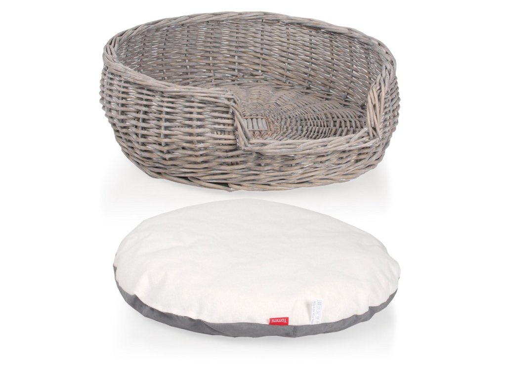 Kulatý proutěný pelíšek vhodný zejména pro kočky a malé psy s povrchovou úpravou ve stylu Provence.
