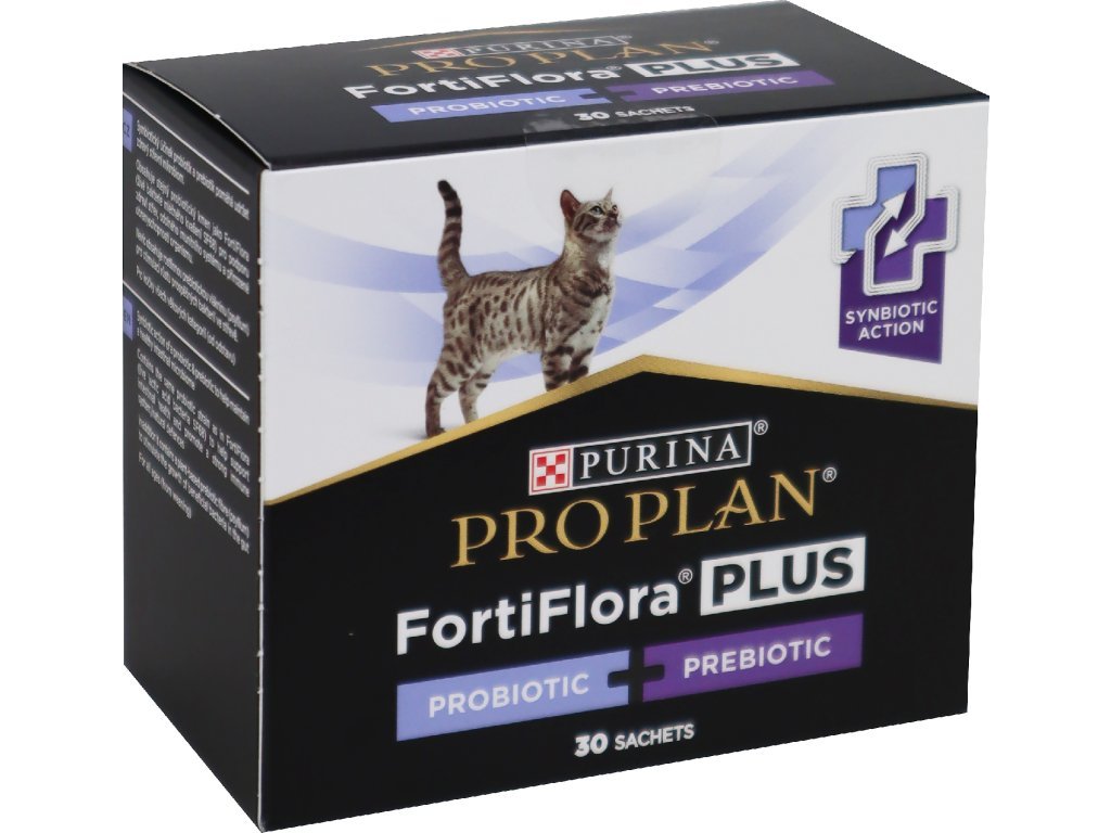 FortiFlora® PLUS je unikátní kombinací probiotika a prebiotika poskytující synbiotický účinek, je vhodná pro kočky všech věkových kategorií (od odstavu). Prokazatelně pomáhá udržet zdravý střevní mikrobiom, jeho rovnováhu a odolný imunitní systém. Každý sáček obsahuje garantované množství probiotika (mikroenkapsulovaného pro zvýšení stability a účinnosti) v kombinaci s rostlinným prebiotikem.