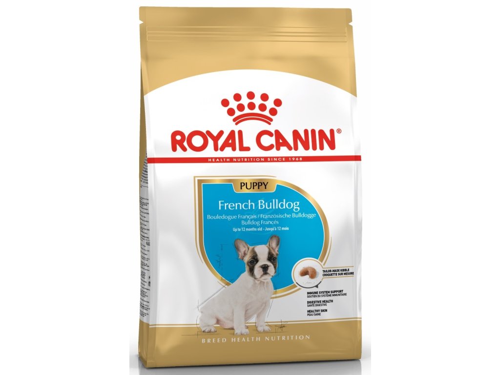 Royal Canin French Bulldog Puppy je kompletní super prémiové krmivo pro štěňata (do 12 měsíců věku) čistokrevného plemena Francouzský buldoček. Krmivo French Bulldog přispívá k podpoře zdravého trávení díky výběru vysoce stravitelných bílkovin L.I.P. Fermentovatelné a nefermentovatelné vlákniny vyživují střevní flóru, regulují zažívání a zlepšují kvalitu stolice. Při správném dávkování krmiva, bude buldoček díky ideálnímu obsahu proteinů (26%) nabírat na svalové hmotě, nikoli tukové vsrtvě. L-karnitin podporuje produkci energie ve svalech. O citlivou kůži bude postaráno díky EPA & DHA. Krmivo snižuje kvašení ve střevech, které bývá příčinou střevních poruch, plynatosti a zápachu stolice. Speciální tvar granule nutí buldočka krmivo pečlivě kousat a tudíž nehltat.