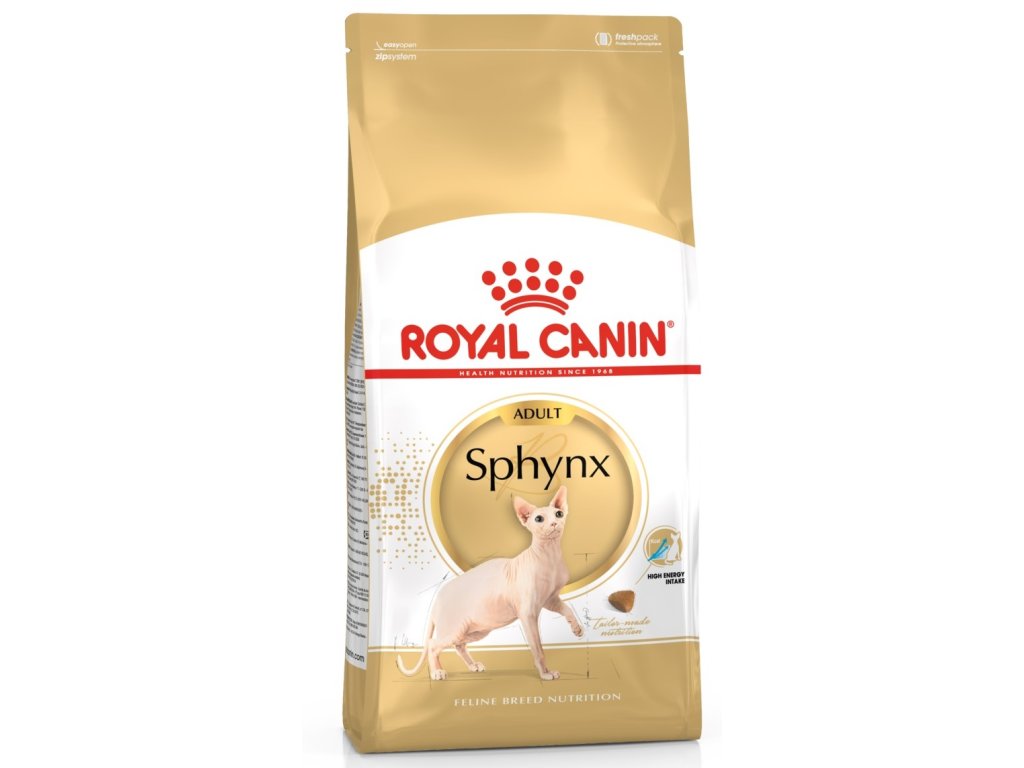 Royal Canin Sphynx je kompletní superprémiové krmivo pro dospělé Sphynx kočky starší 12 měsíců. Protože Sphynx nemají srst, jsou velmi citlivé na chlad.