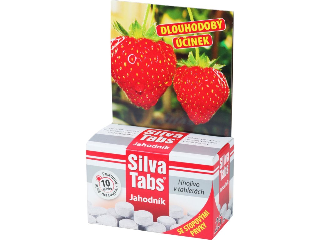 Silva Tabs na jahodník je NPK hnojivo obsahující močovinoformaldehyd.