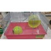 Klec pro myši a jiná malá zvířata s výbavou. Součástí je domeček a kolečko na běhání.