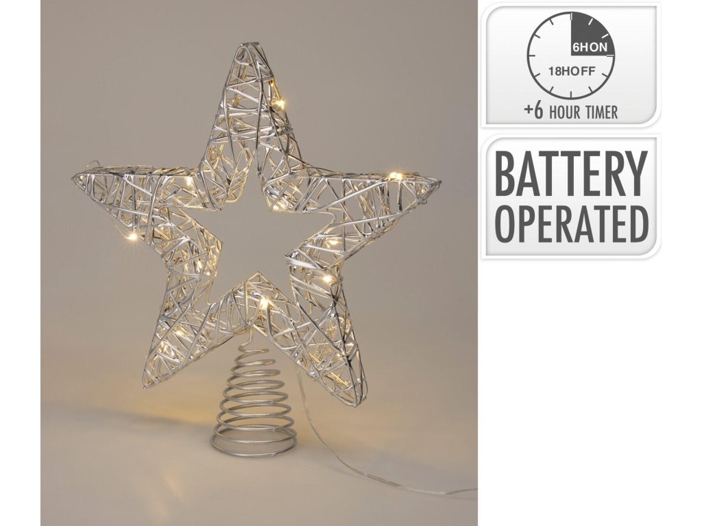 Špička na stromek LED, HVĚZDA, 28 cm, STŘ, s časovačem.
