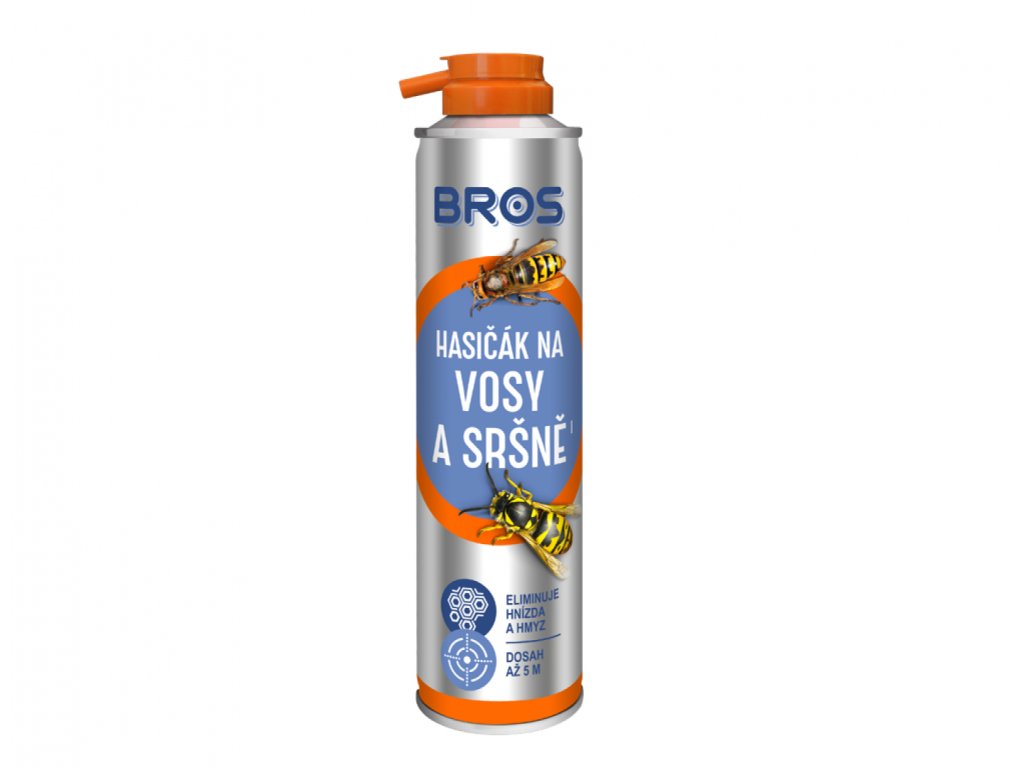 Přípravek Bros Spray proti vosám a sršňům ve formě aerosolu. Je určen pro hubení vos a sršňů a také k ničení jejich hnízd. Díky speciální konstrukci ventilu je možné sprej aplikovat z bezpečné vzdálenosti. Přípravek působí kontaktně a je připraven k okamžitému použití. Dosah 5 m.
