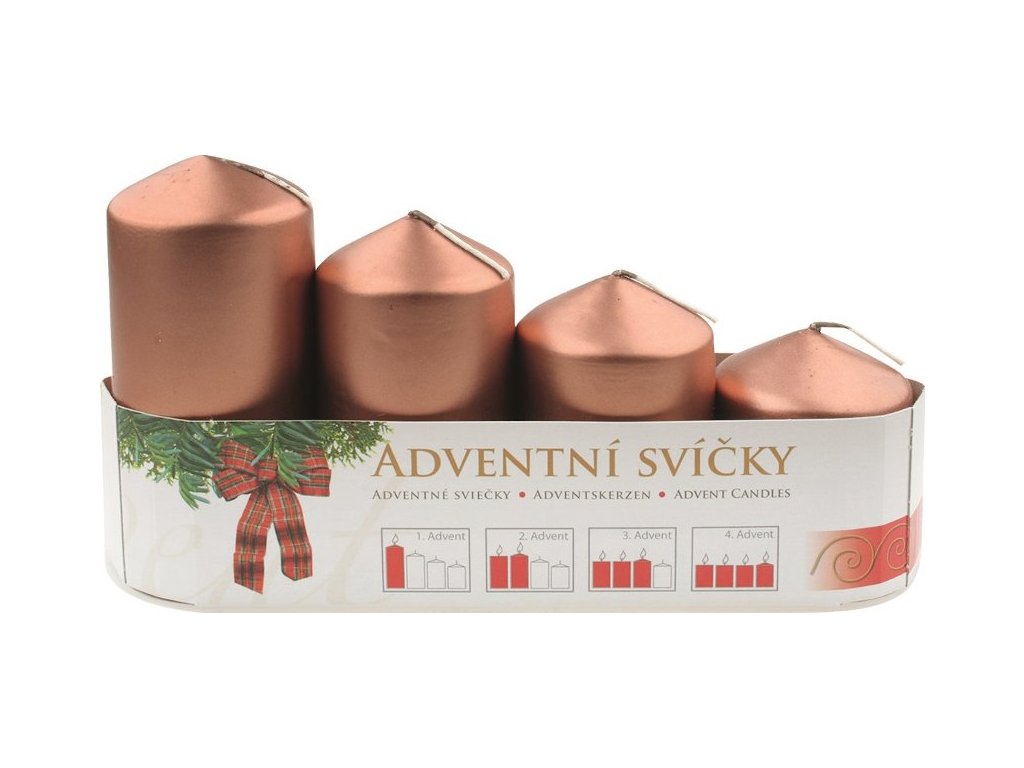 Sada adventní svíce s metalickým efektem ( lakované ), válec postupka 4 kusy.