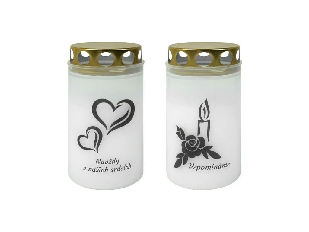 Svíčka hřbitovní s víčkem 140 g - bílá, mix motivů