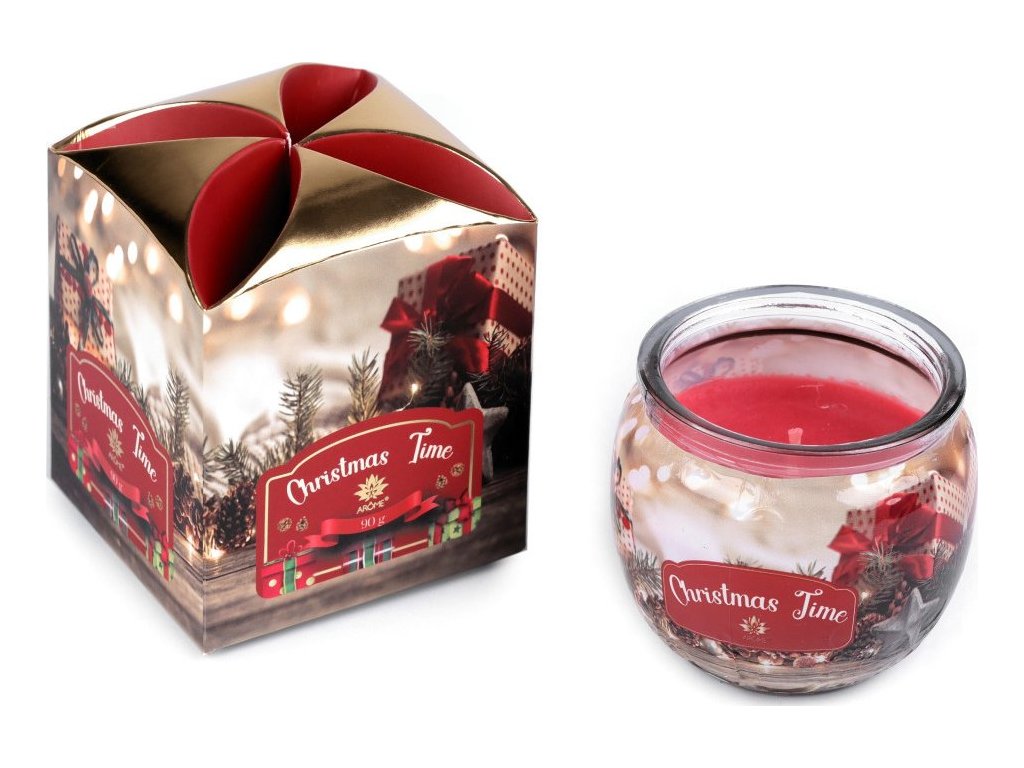 Vonná, vánoční, válec, ve skle, doba hoření 22 hodinVonná svíčka provoní a rozzáří každou domácnost. Díky krásnému dárkovému balení je svíčka vhodná i jako dárek.