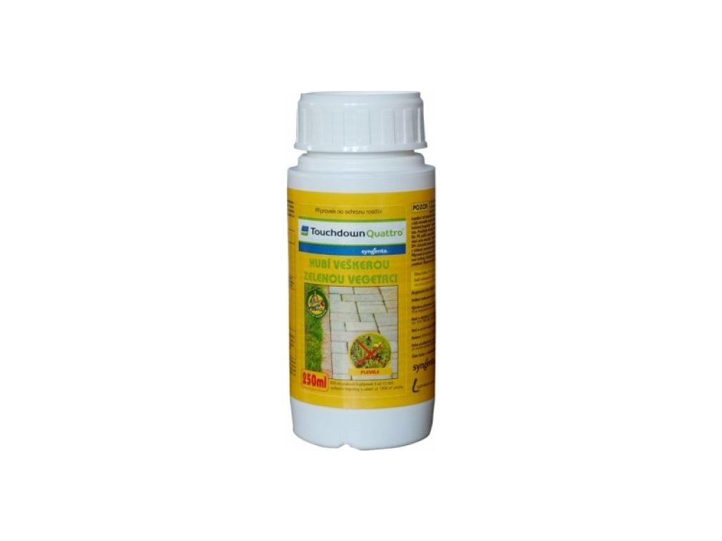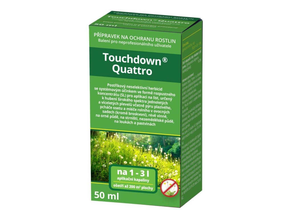 Touchdown Quattro obsahuje účinnou látku glyphosate, která je přijímaná listy. Přípravek působí neselektivně jako listový systematický herbicid proti širokému spektru jednoletých a víceletých plevelů včetně pýru plazivého, pcháče osetu a mléče rolního před setím nebo na strniště. Používá se v ovocných sadech, vinicích na orné i nezemědělské půdě.