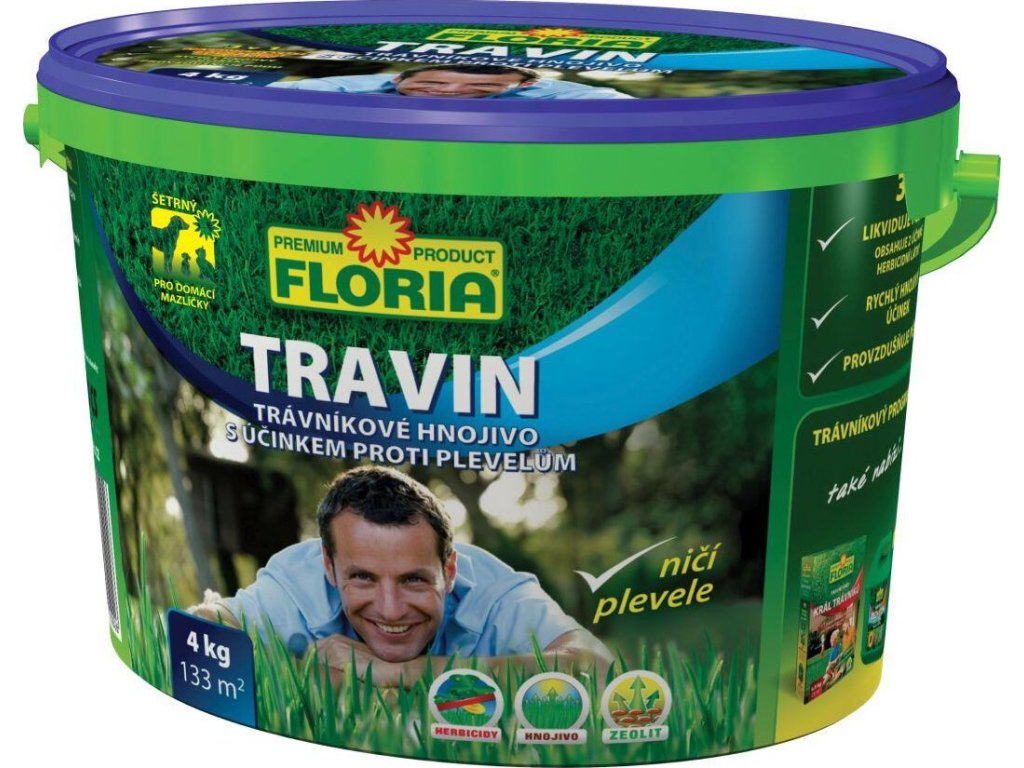 TRAVIN hnojivo na trávníky s účinkem proti plevelům představuje moderní způsob likvidace plevelu. Přípravek se jednoduše aplikuje přímo do trávníku, kde likviduje dvouděložné plevele a současně významně vyživuje trávník. Hnojivo s přídavkem selektivních herbicidů a zeolitu je ve vodě nerozpustné a vydrží aktivně působit v trávníku po dobu 2 měsíců.