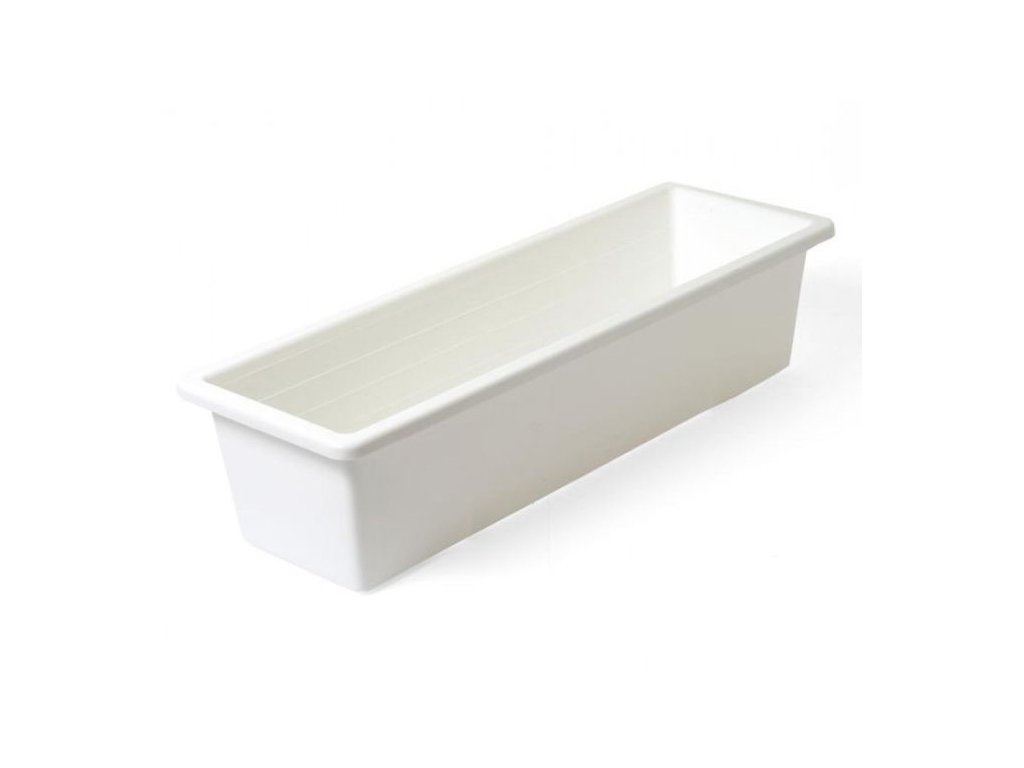 Plastový truhlík na květiny, pro lepší růst a snadnější zálivku se doporučuje provrtat dno pro odtok vody a kombinovat s miskou pod truhlík.