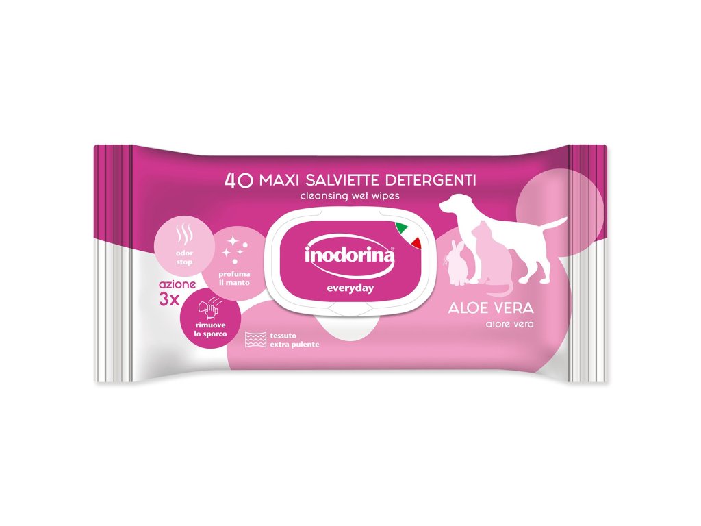 Vlhčené čistící ubrousky pro zvířata s výtažkem z aloe vera.