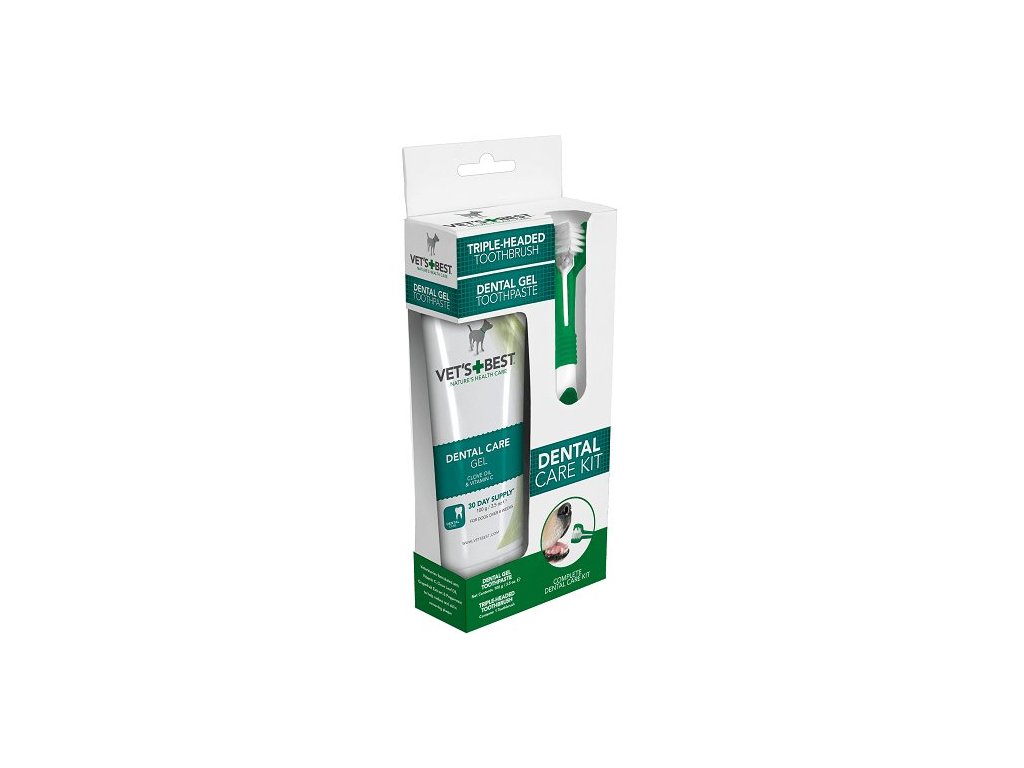 Sada na čištění zubů pro psy Vet's Best poskytuje nejlepší zubní péči pro Vašeho domácího mazlíčka. Dentální gel je určen pro jemné čištění zubního plaku a zubního kamene a pro osvěžení dechu psa. Bělí a rozjasňuje současně. Výtažek z hřebíčkového oleje je přírodní analgetikum a antiseptikum, speciálně používané při zubní péči. Výtažek oleje z máty peprné dodá chuť čerstvé máty na udržení čerstvého dechu.