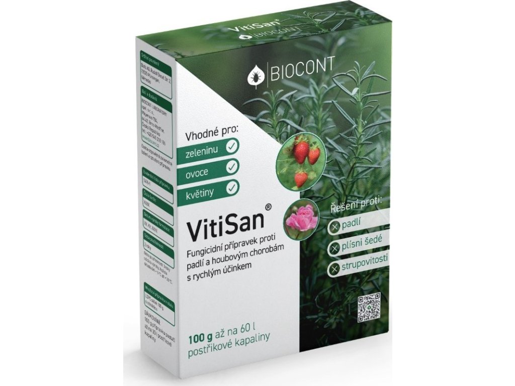 VITISAN je pomocný prostředek zvyšuje odolnost rostlin proti padlí a plísni šedé na révě vinné, padlí a strupovitosti u jádrového ovoce a padlí na zelenině. Působí proti Padlí révy , Plíseň šedá , Strupovitost, Moniliová spála, Padlí jabloně, Hnědnutí listů meruňky, Padlí okurky, Sazovitost.