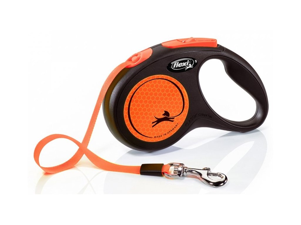 Flexi New Neon je vynikající vodítko, které díky reflexním nálepkám a neonově zbarveným prvkům vyniká za všech povětrnostních podmínek. Reflexní nálepky odráží světlomety ve vzdálenosti více než 150 m