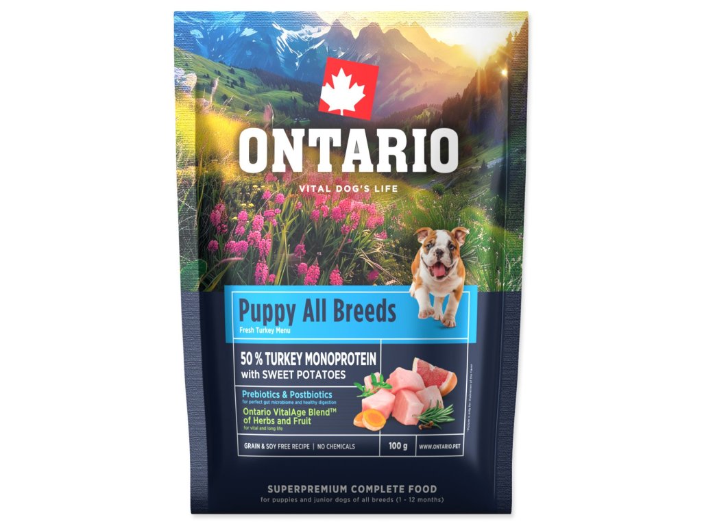 Vzorek Ontario Puppy & Junior All Breeds Monoprotein Turkey & Sweet Potatoes 0,1kg